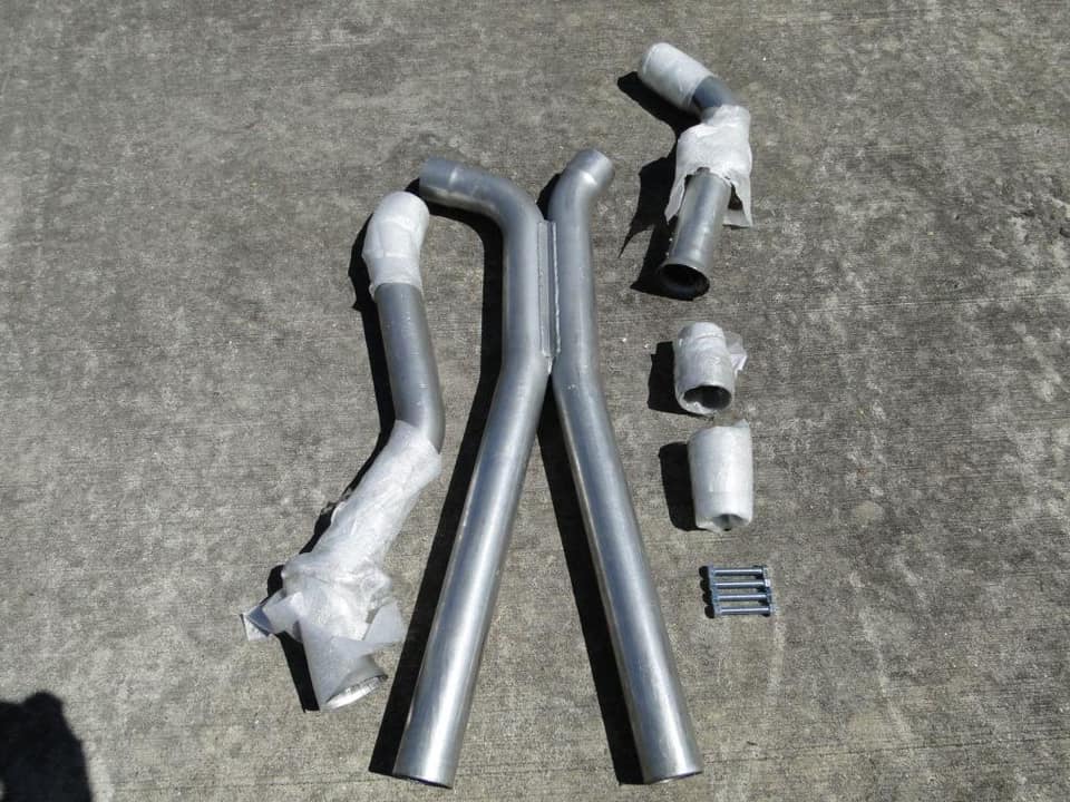 The exhaust system components are also available individually: Balance-pipe, muffler assembly, Over-axle pipes or tailpipes. The tailpipes were designed to give your car that custom look as our tips are visible from the side of the car where they follow the body line. They turn-down so as not to blacken trailers in tow.